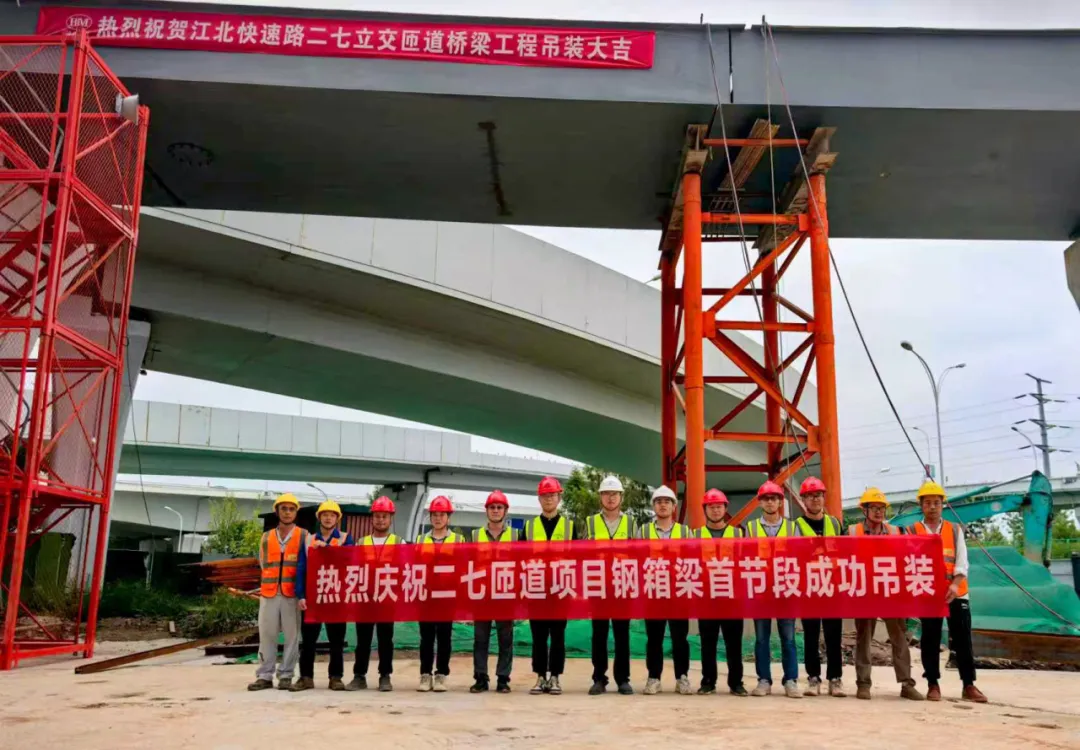 項(xiàng)目直擊丨江北快速路二七立交右轉(zhuǎn)匝道項(xiàng)目鋼箱梁首節(jié)