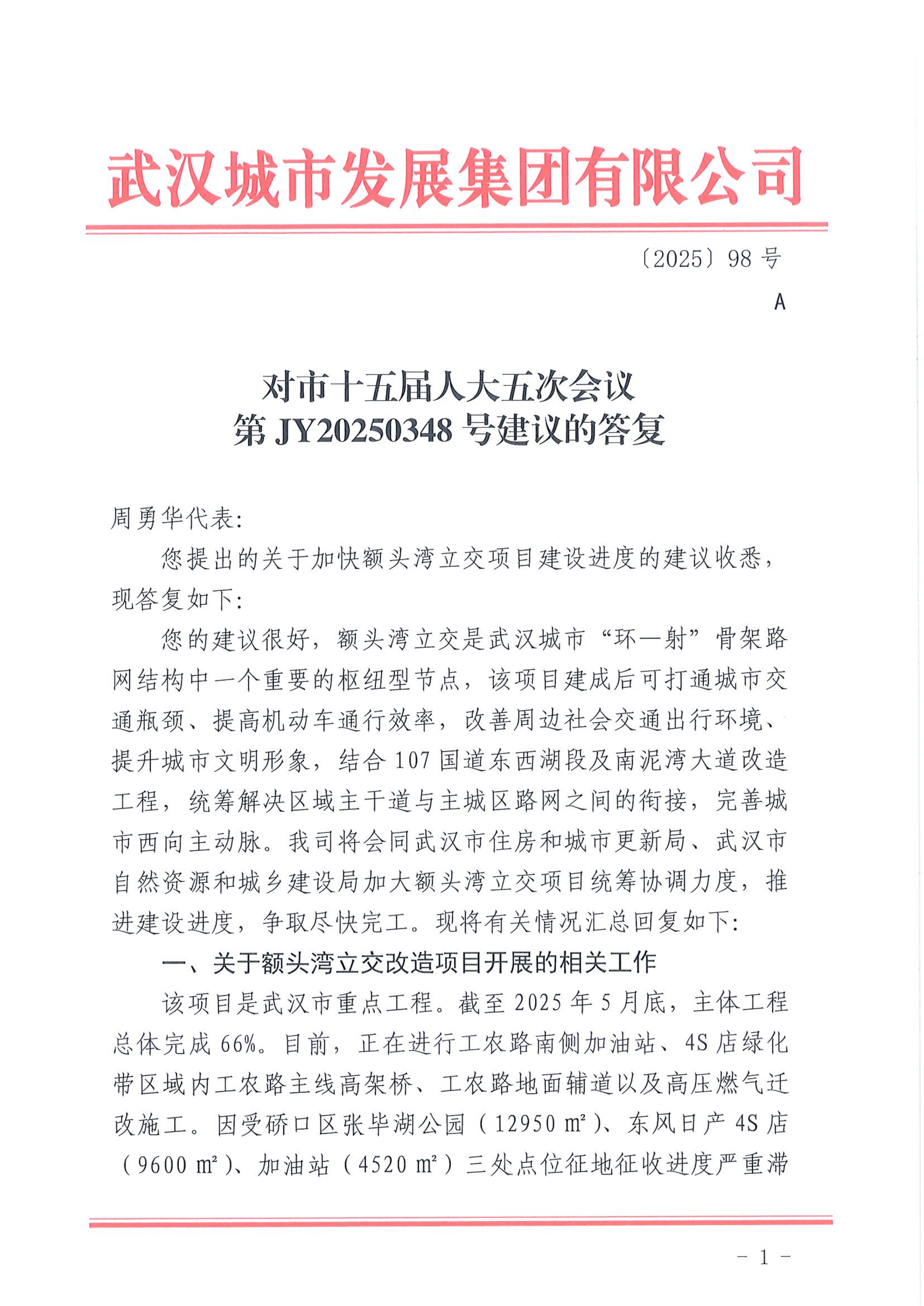 對市十五屆人大五次會議第JY20250348號建議的答復